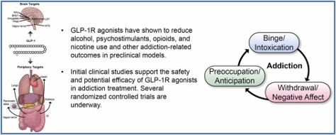 At this juncture, RCTs [randomized control studies] are very much needed to inform the potential application of GLP-1R agonists for ASUD treatment. In addition to efficacy, results of RCTs will be key to determine the safety profile of GLP-1R agonists in this specific population – an important consideration especially given ASUD comorbidities that could be worsen by exposure to GLP-1R agonists (e.g., malnutrition, pancreatitis). Given that no single medication will work for everyone, it is also important for ongoing and future RCTs to collect comprehensive phenotypic and detailed outcome data to inform which patients are more likely to respond positively to GLP-1R agonists, should these medications prove to alleviate ASUD outcomes. Overall, GLP-1R agonists have shown great promise in preclinical models of addiction, and pending results from clinical studies, could be a compelling addition to the ASUD treatment toolbox.